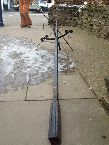 Photos of the Weathervane being removed for restoration at St Michaels' Church in Shefford